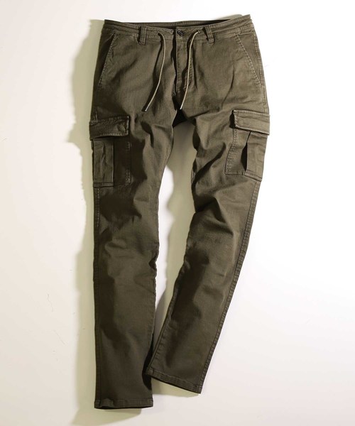 【穿きやすく動きやすい。ハイパワーストレッチカーゴパンツ】履きやすく動きやすいハイパワーストレッチカーゴパンツが登場。 通年使える肉厚感とハイパワーのストレッチで毎日履きたくなるようなパンツです。 高めに配置したサイドのマチがないカーゴポケットは、 シルエットがスッキリ細く見え、足長効果も抜群です。 【コーディネート】 ウエストラインに沿った曲線に腰回りのベルトを裁断・縫製することで 腰回りがすっきりとしたシルエットに見せることが出来ます。 腰馴染みの良いカーブベルト型のウエストに加えて収納型ドローコードも付いているので、 イージーパンツとしてもお使いいただけます。 気楽に履けるパンツなので、幅広いカジュアルスタイルに対応できます。 【素材】 シンプルなツイル生地ながら、通年使える肉厚感とハイパワーのストレッチが効いているので、 履きやすく動きやすいパンツです。 【MEN'S BIGI ~Smart British Style】 2019AWシーズンは今までのメンズビギの歴史に裏打ちされた英国調をベースとし、アップデートを繰り返した『スマート ブリティッシュ スタイル』を提案。 フォーマル過ぎずカジュアル過ぎず、上品で華やかさを感じる大人っぽく熟(こな)れた普段着を展開します。