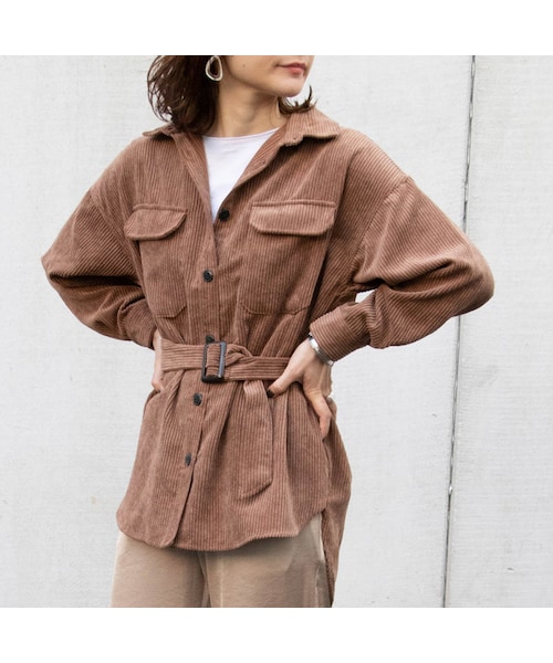 商品名:Sheson(シーズン)セレクト 太コーデュロイビッグシャツ 商品番号:ws373706 商品説明:【2019AW】 ベルト付きのコーデュロイシャツ。 軽く羽織れるので秋口のレイヤードスタイルにぴったりです。 付属のストラップでウエストマークして着たり、ボタンを開ければ羽織としても◎ 同素材のボトムスと合わせてセットアップ風コーデもおすすめ *商品画像は撮影状況やモニター環境で実際の色味と異なる場合がございます。 *当サイトでは、システムによる在庫調整を行っておりますが、他のサイトと在庫を共有している為、ご注文頂いた商品が欠品となる場合もございます。 (予めご理解頂きますよう、宜しくお願いいたします。) ----------------------------------------------------------------------------- サイズ:F(フリー)サイズ(モデル163・169cm) ・身幅平置き 53cm ・着丈 78.5cm ・ 肩幅 58cm ・袖丈 45.6cm ・アームホール 21cm ※商品によって若干異なる場合がございます。 ご了承ください。 素材:ポリエステル90% ナイロン10% カラー:ベージュ・ブラウン・ブラック