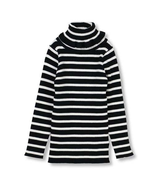 冬のインナー、トップスの主役として活躍するタートルネックニットです。女の子らしいメロウデザインがポイントです。無地、ボーダーと色柄違いで持っていても重宝するアイテムです。