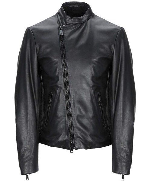 ARMANI JEANS Jackets. faux leather, long sleeves, solid color, fully lined, multipockets, single-breasted, contains non-textile parts of animal origin, generic outerwear. 100% Lambskin