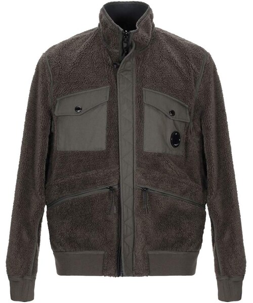 C.P. COMPANY Jackets. gabardine, pile, logo, two-tone, single-breasted, zip, turtleneck, multipockets, long sleeves, fully lined, stretch. 94% Polyester, 6% Elastane, Cotton