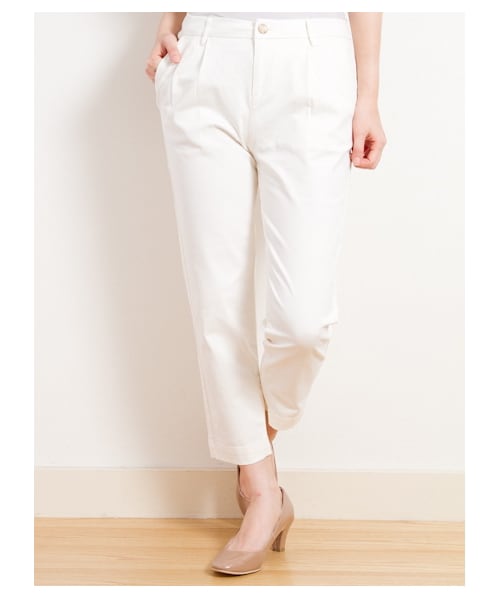 シンプルビューティなカラークロップドパンツです。ウエストゴムレス、裾にかけてのペンシルラインなど綺麗さに拘ったシリーズです。コットンを多く含んだ素材で今から秋冬まで活躍してくれます。ヒップラインがゆったりしているので履きやすいのも魅力です。生地にストレッチ性もあるのでオフィスにも最適です。【モデル身長:約164cm/着用サイズ:Sサイズ】