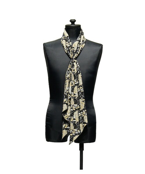 商品詳細 アールヌーボー柄を全面にプリントし、付属にガラアーベントオリジナルのリングが 付属します。 MODEL 177cm 55kg SIZE FREEを着用。 MATERIAL RAYON100% COLOR BLACK×YELLOW