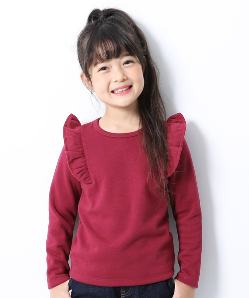 甘すぎない『裏シャギー肩フリルトップス』 1枚でしっかり存在感の出る肩フリルトップス。 甘さを抑えたシンプルなデザインなので合わせ方次第でカジュアルからフェミニンまで幅広い着こなしにフィットします。 ベビーからジュニアまでをカバーする80cm~160cmまでの豊富なサイズ展開になっています。 ■素材■ 裏地には保温性のあるシャギー素材を使用しているので、真冬でもあたたかく過ごせます。 ずっと触れていたくなる程ふんわりソフトな肌ざわりに思わずうっとり。 また、伸縮性に優れた上質ストレッチ素材を使用。 柔らかい生地と抜群のストレッチで、どんなに動いてもストレスなく着用していただけます。 ■ディティール■ 伸縮性:あり ・裏側にお名前タグ付き