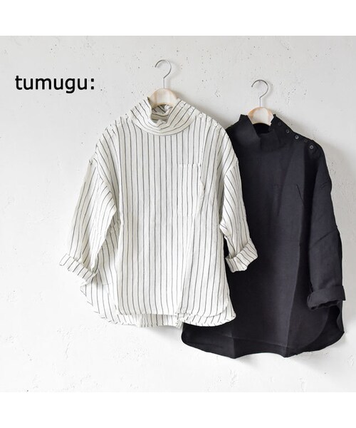 tumugu:よりリネンレーヨン生地のブラウスが届きました。 くたっとした生地感がナチュラルな雰囲気です。 ワイドなシルエットでリラックス感のある着心地です。