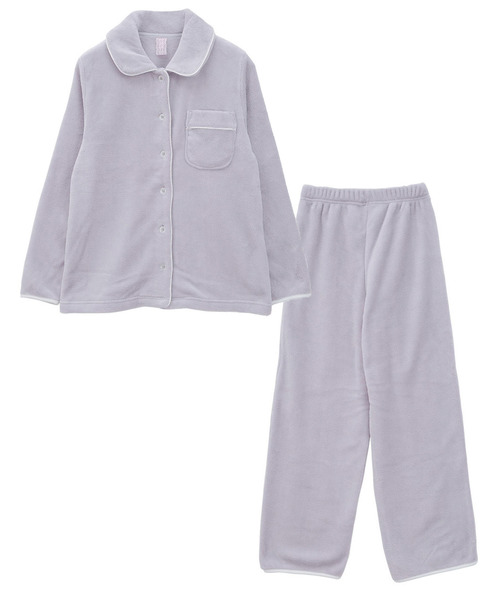 " すっと、肌になじむやわらかさ。 " 開襟トップス+ロングパンツ セットアップ まるで粉雪のようにさらさらで柔らかなフリース生地が、体を優しく包み込むルームウェアシリーズ。 ゆったりとしたサイズパターンにしつつも、上品なシルエットを損なわないように仕上げた絶妙なデザイン。中厚生地なので軽く、ふわりと暖まれる着用感です。 速乾性にも優れているのでお手入れも簡単。長く使える優秀アイテムです。 -------------------------------------------------------- *Floral moco 別売商品* ・開襟トップス+ロングパンツ→ 品番 19W165 ・ロングワンピース→品番 19W166 ・ボーダーセットアップ→品番 19W167 ・ボーダーワンピース→品番 19W168 ・ライン配色Vネック+ロングパンツ→品番 19W169 ※zozo townの検索欄で品番を入力していただくと、 同シリーズがすぐにチェックしていただけます! --------------------------------------------------------【関連キーワード】 パジャマ シンプル パイピング ワンカラー バイカラー 前開き ポケット あたたかい おうち 快適 冬