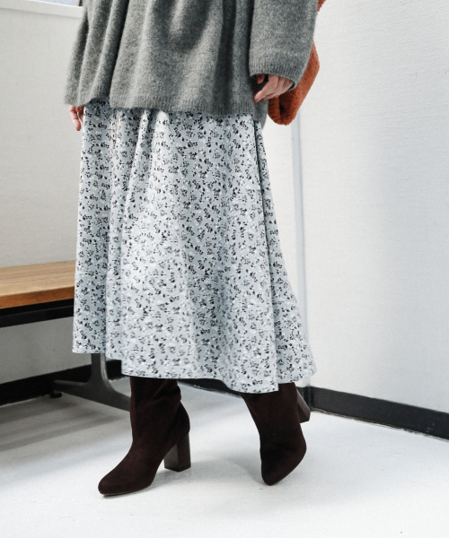 肉感のあるヴィンテージサテンに総柄プリントを施したエレガントなフレアスカート。 裾の切り替えを広くとることで、ハリ感とボリュームを出しました。 シンプルなトップスと合わせるだけでコーディネートが完成します。