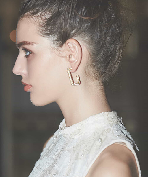 耳元にさりげなく華やかさをプラスする一品小ぶりのパールが埋め込まれたスクエアピアス。耳元にさりげなく華やかさをプラスしてくれるデザインです。使い勝手の良いサイズ感でデイリーユースにぴったり。