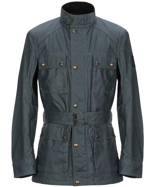 BELSTAFF Jackets. plain weave, coated effect, solid color, mandarin collar, single-breasted, snap-buttons, zip, multipockets, long sleeves, snap button cuffs, belt, fully lined, generic outerwear. 100% Cotton