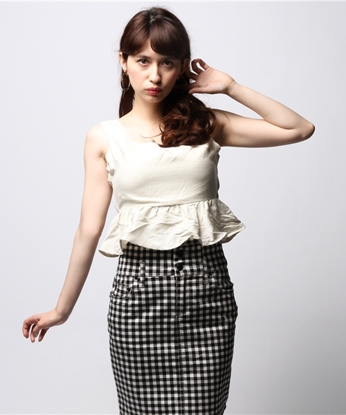 ●バックリボン ビスチェ● 裾のぺプラムデザインがガーリーなビスチェ。大きく開いたバックとリボンのデザインがポイント。ショート丈&コンパクトなシルエットなので、ハイウエストボトムやワイドパンツとの合わせもオススメ。 model H165 B78 W56 H85 着用サイズ:ONE SIZE