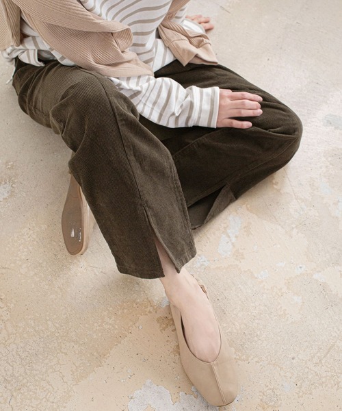 フロント裾部分にスリットを入れたコーデュロイ素材のカジュアルワイドパンツ。 コーデュロイの縦の畝とセンター切替が、縦ラインをメイクしてくれるのでスタイルアップして見えます。 程よいワイド感で着ぶくれしないのも嬉しいポイント。 コーデュロイ定番のブラウン系~コーデのポイントとなるパープルまで、華やかなカラー展開でお好みの一枚が見つかります。リブニットやブラウスなど、コンパクトなトップスをINすることで女性らしく着こなせます。 スウェットやニットと合わせれば、カジュアルでデイリーユースしやすいアイテムです。 裾にポイントがあるデザインなのでワンピースとの相性も抜群です。 ********************** 透け感: なし 裏地:なし 伸縮性:なし 光沢感:なし 生地の厚さ:普通 ********************** ※ご覧のモニター環境や撮影環境により実際の商品と多少色味が異なって見える場合がございます。 ご理解の程よろしくお願いいたします。 【お買い物をよりお楽しみいただく為に】 ▼商品のお気に入り登録をおすすめします ♡をクリックしてください。 完売カラーの再入荷や、ラスト1点の通知、 セールの際の通知を受ける事ができます。 ブランドのお気に入り登録もご一緒にお願い致します。