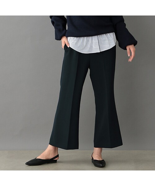 【Design/Styling】ストレッチのきいた素材で着心地のよいパンツです。裾をフレアにする事で足首が細く見え、めりはりのあるスタイリングが出来ます。Tシャツやタンクトップなどのカジュアルトップスを合わせれば、いつものコーディネートをアップデート出来ます。【Fabric】強撚のポリエステルを使用したダブルクロス素材.強撚糸を使用することによりドライタッチでマットな見え方と反発性が特徴です。※この商品はサンプルでの撮影を行っています。実際の商品とイメージ、サイズ、品質表示、原産国等が異なる場合がございます。※店頭及び屋外での撮影画像は、光の当たり具合で色味が違って見える場合があります。商品の色味は、スタジオ撮影の画像をご参照ください。モデル(下部ディテール画像):H168 B78 W60 H87 着用サイズ:M