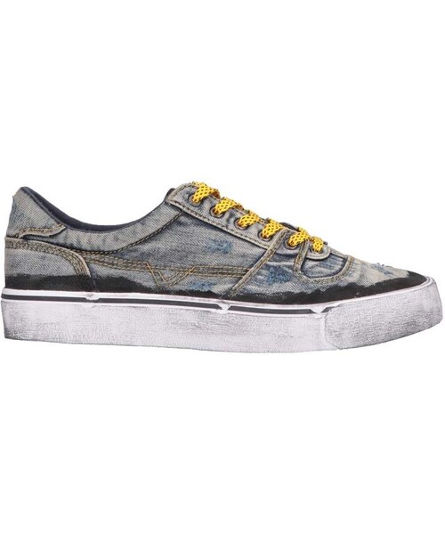 DIESEL Sneakers. denim, logo, solid color, laces, round toeline, flat, fabric inner, rubber cleated sole. Cotton
