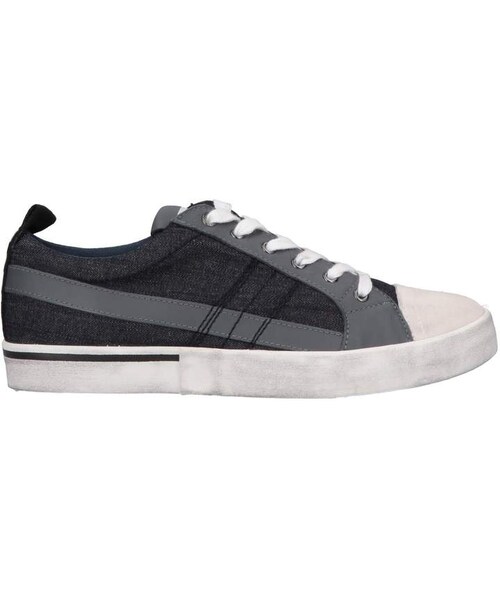 DIESEL Sneakers. denim, logo, multicolor pattern, laces, round toeline, flat, fabric inner, rubber cleated sole, contains non-textile parts of animal origin. Cotton, Bovine leather