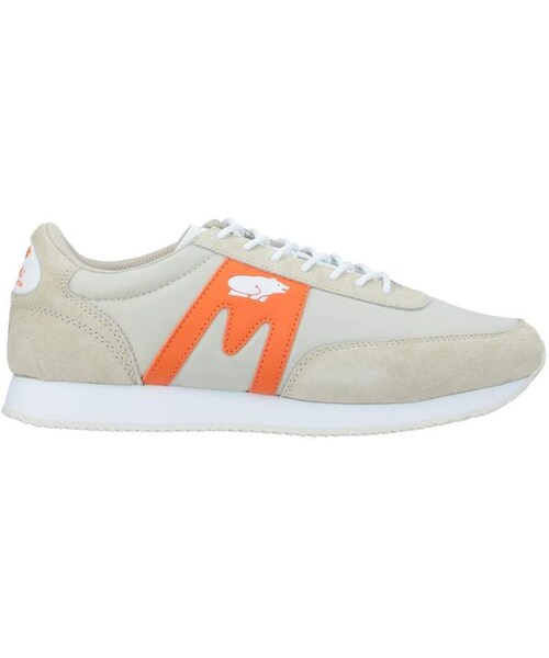 KARHU Sneakers. suede effect, logo, two-tone, laces, round toeline, flat, fabric inner, rubber cleated sole, contains non-textile parts of animal origin, small sized. Soft Leather, Textile fibers, Rubber
