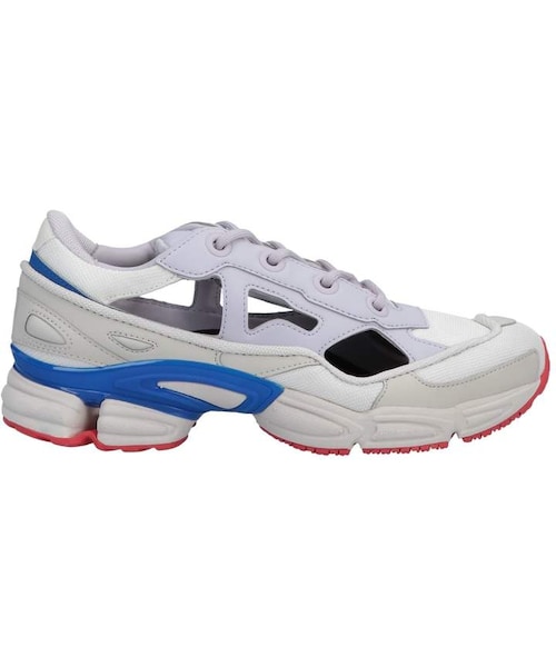 ADIDAS by RAF SIMONS Sneakers. faux leather, techno fabric, logo, two-tone, laces, round toeline, flat, fabric inner, rubber cleated sole, contains non-textile parts of animal origin. Textile fibers