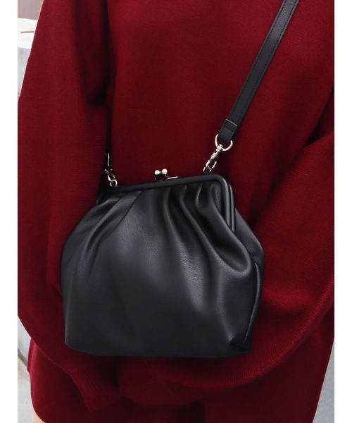 コロンとしたコインデザインがポイント★ がま口開きで、開閉しやすいデザインになっています。 コンパクトなボディーですがギャザーデザインで容量を出しています。 ムラ感のある上品な表面としなやかさのある合皮を使用しており、 カジュアル過ぎない雰囲気のアイテムです! ストラップ付なので、ショルダーバッグとしてご利用して頂けます♪