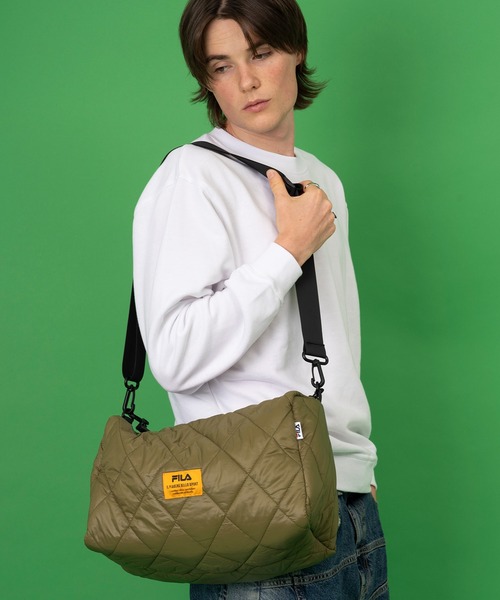 FILA フィラ ブランド ロゴ 大容量 パデット キルティング ショルダーベルト パラコードハンドル 2WAY ドラム ショルダーバッグ 約25L