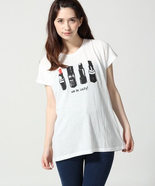 リップのプリントがかわいいTシャツ☆何枚でも揃えたくなるシンプルなプリントTシャツ!今回はリップが主役☆ベーシックなシルエットに仕上げることでボトムを選ばずに着ていただけます!