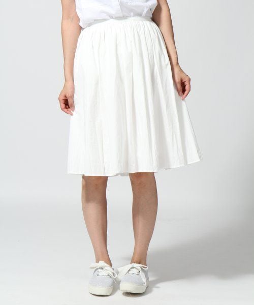 膝下丈で穿ける見た目にも涼しいスカート。張りのある素材&ギャザーをたっぷりと施したデザインなのでほどよく広がり、ラインがとても綺麗なアイテムです。