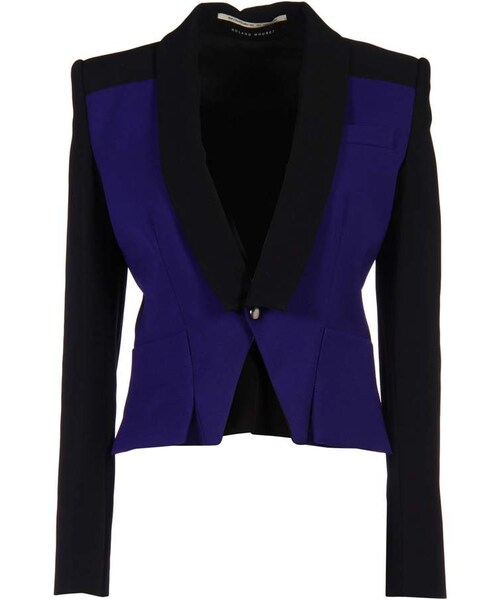 ROLAND MOURET Blazers. crêpe, two-tone pattern, single-breasted, snap button closure, lapel collar, multipockets, long sleeves, semi-lined, darts, dual back vents, single chest pocket. 63% Viscose, 34% Acetate, 3% Elastane