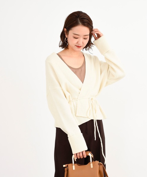 Vネックラインが首周りをすっきりとした印象にしてくれるカーディガンです。紐ベルト付きのハイウエストデザインで、スタイルアップ効果も期待できます。長めの袖や折り返しで可愛さもプラス。普段のコーディネートに取り入れやすい羽織アイテムは、ワードローブに抑えておくと重宝すること間違いなしです。