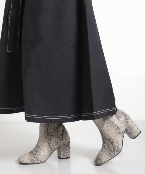 トレンドのスクエアトゥブーツ。ミドルの丈ブーツはミディ丈~マキシ丈のボトムを選ばず合わせられる優れもの。内サイドにZIPを施し、着脱が楽に出来るのも嬉しいポイント。【素材・サイズ感】S~LLの4サイズ展開。低めの太ヒールなので安定感があり歩きやすさも◎ ベーシックなレザー調、クロコ風、パイソン柄とバリエーション豊富にご用意。 プチプライスなので色違いでGETするのもおすすめ。