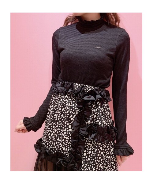 程よくフィットしたシルエットにフリルをあしらって、フェミニンな雰囲気漂うニットトップス。胸元のブランドロゴプレートが、さりげないアクセントをプラス。1枚ではもちろん、ビスチェやキャミワンピースとのレイヤードスタイルもオススメです。※商品画像はサンプルのため、色味やサイズ等の仕様に変更がある場合がございますので、予めご了承ください。