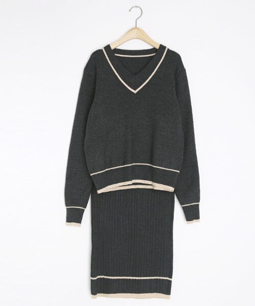 Vネックニット&スカートのSETアイテム! 上下ともに配色ラインが端正な印象です。 セットではもちろん単品でも様々なコーデに使えます! ※WEARに記載してある金額と、DHOLIC通販サイトに記載してある金額にシステム都合上、稀に誤差が生じます。正しい金額はDHOLIC通販サイトに記載された金額です。