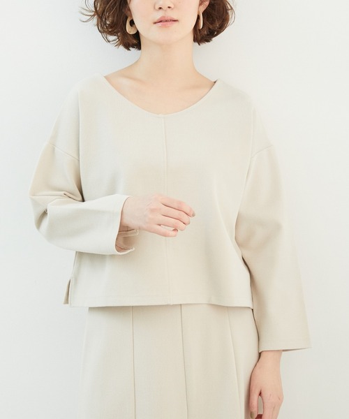 ふわふわとした質感で暖かい。軽やかさがあって動きやすさも抜群。冬らしい起毛感のあるポンチ素材を使ったプルオーバーです。布帛のような見え感ながら、カットソー生地のため着心地も抜群。体を包み込む構築的なフォルムで、幅広い体型の方にお召しいただけます。前後逆にしても着られる2WAY仕様。同素材のスカート(品番:GDC59610)と合わせてセットアップスタイルも楽しめます。