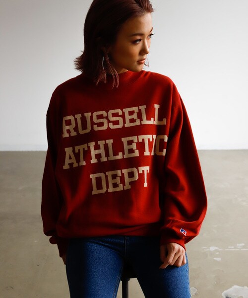 ◆人気のHoliday×RusselAthlericコラボ! 【特徴】 フロントに施したビックロゴが特徴的な Holiday×RusselAthleric別注スウェット。 人気のルーズシルエットにトレンド感のある モックネックデザインでこなれ感UP。 古着風なロゴがカジュアル派にはたまらない1着に◎ 【スタイリングポイント】 ゆるっとシルエットなので スッキリパンツスタイルやはもちろん タイトスカートで合わせて女性らしい ポイントスタイルもおススメ♪ ◆【RUSSELL ATHLETIC / ラッセルアスレティック】 1902年、アメリカ、アラバマ州 アレキサンダー・シティで、ベンジャミン・ラッセルによってスタートしたラッセル。 1920年代初頭に世界で始めてスウェットシャツの原型を作り、1938年には世界初のラバープリントを開発。 (現在のアメリカン・ラバープリントの原型)その後、その技術を使って全米のスクール、カレッジのユニフォーム、 各校のブックストアに学校の名前、ロゴが入ったスウェットシャツを普及させた。 1980~90年代にはアメリカのプロスポーツ(NFL・MLB)などとサプライヤー契約を結び、 ラッセルの「R」マーク(イーグル・R)を全米に根付かせた。 「アメリカ人の自宅のクローゼットには、意識せずともラッセルのウェアがある。」と言われる所以である。