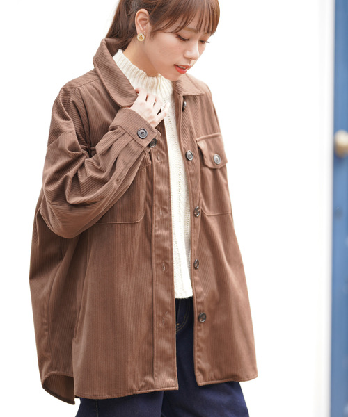 旬顔コーデュロイのビッグシャツジャケット トレンドのコーデュロイを使用したCPOジャケット。 光沢のある太めの畝がカジュアル感を抑え気味にした大人コーデにも使えるアイテムです。 華奢見えも叶えてくれる今年らしいビッグシルエット。 大きめのボタンがメリハリをつけて引き締めてくれます。 シンプルなコーデにさらっとはおるだけでトレンドに仕上げてくれるアウター。 シャツ感覚で気軽に羽織れるのも魅力です♪ 裏地なし 伸縮性なし 中厚 前開きボタン留め 袖口ボタン開閉可 胸・サイドポケットあり 織りキズやだま等みられる場合もございます 洗濯:手洗い可