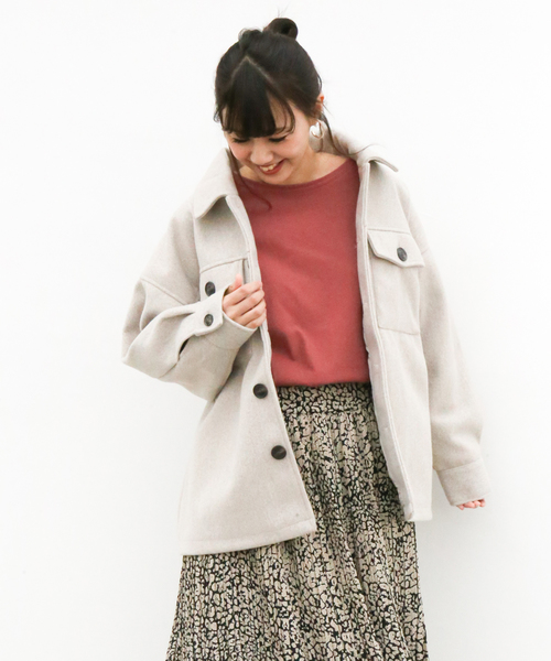 今季のトレンドでもあるCPOジャケットは インにパーカーなども着れるビックシルエットが定番! 杢調のスモーキーカラーが旬のジャケット 抜きで着てメンズっぽくもカワイイ☆ 旬のコーディネートもこれ1枚で完成☆