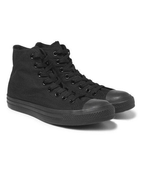 In 1917 Mr Marquis Mills Converse developed a rubber-soled shoe and named it after the basketball player Mr Chuck Taylor, and the iconic style is still going strong. Crafted from black canvas with the classic logo tab, this black-on-black pair embodies the design's covetable, cool simplicity. Teamed with your worn-in blue denim this timeless pair will see you through whatever your weekend has in store. Shown here with an A.P.C. T-shirt and jacket, Nudie Jeans jeans, Folk bracelet, Miansai bracelet and Uniform Wares watch.