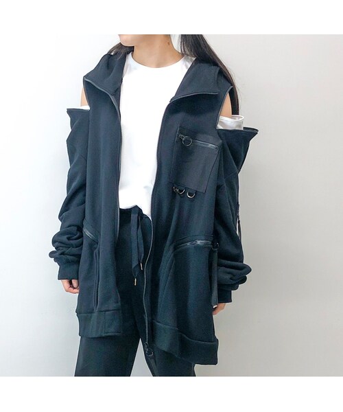 NICK NEEDLES 2019 渾身のディテールパーカー 7箇所のジッパー、4つのポケット、4個のDカンをBIGサイズなシルエットに詰め込みました。 肩のジッパーは開けるとインナーが見える使用です。 左右のポケットはマチ入りでサイズが大きく高い収納力があります。 Dカンなどにキーホルダーを引っ掛けて自分なりのアレンジも可能です。 MODEL 身長 180cm、160cm MATERIAL COTTON 100% デニム COTTON 97%,POLYURETHANE 3% フライス COTTON 95%,POLYURETHANE 5% SIZE F 肩幅 65cm 身幅 64cm 着丈 87cm 袖丈 64cm
