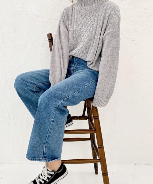 すっきりとしたシルエットがキレイなワイドデニム。 大きめにロールアップしてもかわいいのでコーディネートの幅が広がります◎ ワイドとストレートの中間くらいのシルエットなので合わせやすいです。