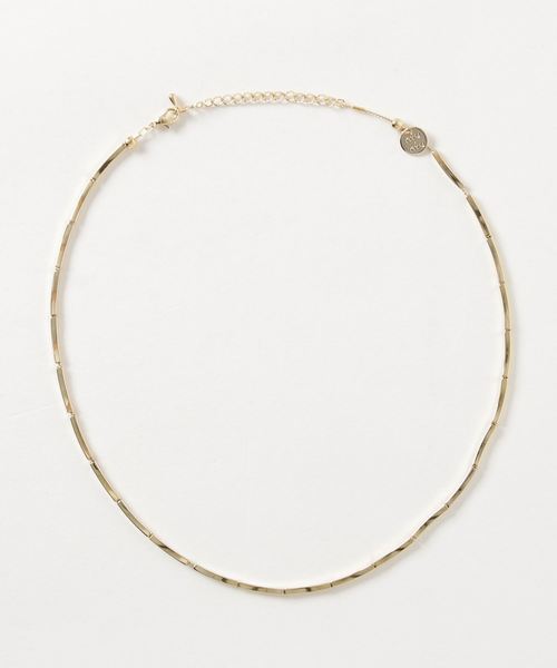 連なったスクエアパイプに極細チェーンを通したメタルネックレスです。大人っぽく上品な雰囲気に仕上げました。シンプルなので合わせるコーディネートを選ばないのは嬉しいポイント。カジュアルからパーティーシーンまで、幅広くお使いいただけるオススメのアイテムです。