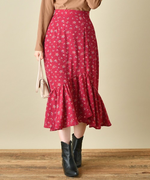 【2019AW natural couture】ナチュラルクチュールの女っぽスカートシリーズ! 軽やかで上品なデザインはレディな着こなしにアップデートしてくれる、ティアードスカート 裾部分のアシンメトリーなティアードが歩くたびに揺れ、軽やかで女性らしい印象のスカート。レディライクなマーメイド調のシルエットに、さり気ないヘムラインもポイントに。滑らかな素材感で心地よい肌触りと、後ろウエストのゴム仕様で着心地も抜群です。微光沢感のある上品な無地と、フェミニンライクな花柄をご用意しており、印象も異なって見えるので柄違いでも欲しくなっちゃいます!肌寒い秋はタートルネックやブラウスに、冬はほっこりとした愛らしいニットに合わせて着たくなる今季マストなスカートです。