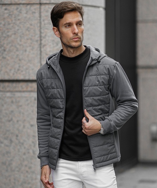 【フロント中綿ジャケット】■Design/デザイン肌寒い季節の心強い味方、フロント中綿ジャケットがリニューアルして帰ってきた!風を感じやすいフロント部分には中綿を敷き詰め、裏地にフリースを使用しているため、軽量で抜群の保温性を実現。フロント部分以外は伸縮性のある素材を使用し、窮屈感のない着用感を楽しめる。さらに、スリムなシルエットで仕上げることで着膨れを防ぎ、スマートな佇まいを演出。ダブルジップを採用することで野暮ったさも感じさせず、スタイリッシュに暖をとれる。我慢とは無縁のジャケットで冬を軽快に着こなせ。■Material/素材感ポリエステルを使用した、軽やかな生地感が特徴。裏地にはフリースを採用し、しなやかで動きやすさがありながら保温性にも優れた逸品。【SOMEDIFF -サムディフ-】何かが違う、卓越した『格上の男らしさ』を纏う。"オトナの本能を刺激する、こだわり抜かれたアイテム"で、他とは一線を画す、特別な装いをあなたに。をコンセプトに展開する、当店オリジナルブランド。…………………………………………■生地の伸縮性 ・・・ 伸びます。■生地の透け感 ・・・ 透けません。■生地の厚み ・・・ やや厚いです。■着用のサイズ感 ・・・ タイトめです。■裏地の有無 ・・・ あり。■推奨時期 ・・・ 春秋冬…………………………………………【当店スタッフが着用しました!】身長:MENS/163cm/56kg体型:低身長 小柄 細身体型普段着用サイズ:S~Mサイズ今回着用サイズ:Mサイズ◆着用感肩幅は指1本分落ち、着丈はお尻が半分隠れる長さです。袖丈は手の甲が半分隠れ、全体的に程よくピッタリめなサイズです。--------------------------------------身長:MENS/171cm/66kg体型:太もも太め 筋肉質体型普段着用サイズ:M~Lサイズ今回着用サイズ:Lサイズ◆着用感肩幅はピッタリです。着丈はお尻が半分隠れる長さで、袖丈は手首でとまります。全体的にピッタリとフィット感のあるジャストサイズです。--------------------------------------身長:MENS/174cm/62kg体型:すらっと体型普段着用サイズLサイズ今回着用サイズ:Lサイズ◆着用感程よくジャストなサイズ感でした。着丈はお尻が3分の2ほど隠れるあたりで、袖丈は手首ジャストです。フロントZIPを閉めても窮屈感はありません。同じ様な体型の方はLサイズをおすすめします。--------------------------------------身長:MENS/178cm/70kg体型:高身長・筋肉質体型普段着用サイズ:XLサイズ今回着用サイズ:XLサイズ◆着用感全体的に丁度良いサイズ感でした。肩幅は指2本分落ち、身幅はややゆとりがあります。着丈はお尻が半分隠れる長さで、袖丈は手の甲が隠れます。=============================【お買い物をもっと便利に楽しく♪】■商品のお気に入り登録をすると完売カラー・サイズの再入荷通知や、ラスト1点の通知、お得なセール情報も受け取ることができます!■ブランドのお気に入り登録をすると新商品や再入荷のお知らせなどいち早くブランドの最新情報を受け取ることができますのでご登録をオススメします!
