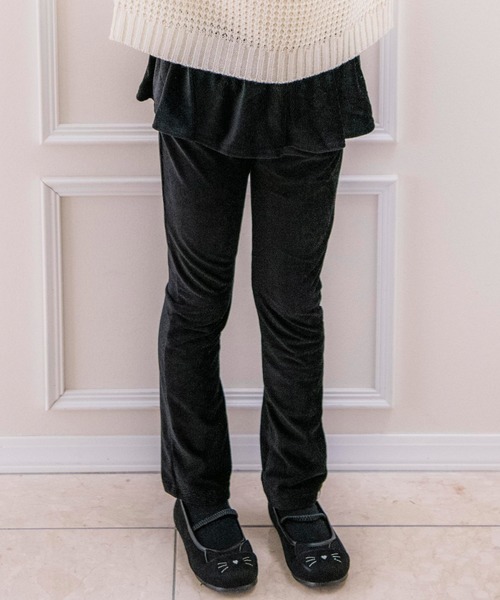 のびのび、楽々、フリフリかわいい! 秋冬仕様のコーデュロイフリルストレッチパンツ かわいくて実用的!と人気の のびのび楽々なフリルストレッチパンツに、 秋冬ムードをまとったコーデュロイタイプが新登場。 上品な光沢感、そしてソフトな肌触り、 もう虜になること間違いなし! 色は、ベーシックなブラック、ネイビーをはじめ、 秋冬に着たくなるこっくりカラーでのラインナップ! サイズ展開は90cmベビーサイズから、 小学生高学年もOKな160cmまで。 カジュアルコーデにも季節感を取り入れて、 その時期ならではのおしゃれを楽しんで! ここがPOINT! - 女の子らしいフリルでお尻まわりをキュートにカバー - 左裾にはゴールド王冠のタグを。さりげないワンポイントアクセントがおしゃれ! - フリルをめくると、実用的な両サイドにポケット付き ・伸縮性:あり ・生地の厚み:普通 ・透け感:なし ・ポケット:左右にふたつあり ※商品の素材や色合いなど、生産時期によって差異が生じます。