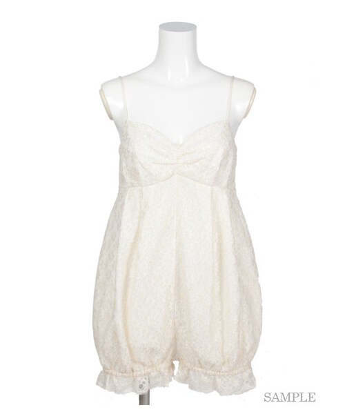 繊細かつ可憐なヴィンテージレース地ボディで、クラシカルフェミニンな雰囲気に仕上げたコンビネゾン。胸下から切り替えたボリューミーなフォルム+裾のフリルが、かわいらしさをアピールします。ほどよくフィットする、背中のゴムシャーリングデザインも◎。※商品画像はサンプルのため、色味や仕様変更がある場合がございますので、予めご了承ください。14ssusg_LBW14awusg_LBW