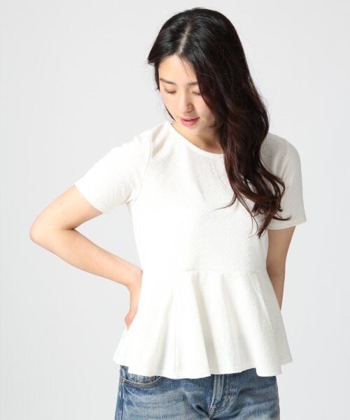 人気アイテム再登場☆大人気だったぺプラムトップスが装いを新たに再登場しました!表面が花柄になったジャガード素材を使用しており、シンプルなデザインですがあっさりしすぎないところがGOOD☆以前のタイプよりもぺプラムのフレアーを多めに入れた華やかなシルエットにも注目です!伸縮性のある素材を使用しているので着心地も抜群ですよ!ぜひお試しになってください☆