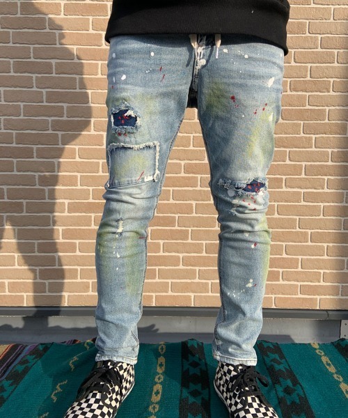GALLIS ADDICTION(ガリスアディクション)から拘りのデニムパンツが登場。 ダメージ加工デニムパンツ。デニム全体にカラーのペイントとペンキの飛ばしが特徴、インパクト抜群のパンツに。 腰にはのスピンドルがついておりスピンドルジャージ風に。ストレッチが効いているので履きやすさも◎ ユニセックスでも着用可能。 【JACKROSE 快適お買い物ガイド】 ★最短で翌日お届け商品をカートに入れた後、注文内容の確認ページで「即日配送」を選択していただれば、最短でご注文した翌日にお届け致します。 ★商品のお気に入り登録完売カラーの再入荷通知や、ラスト1点の通知、セールの通知をお知らせします。 ★ブランドのお気に入り登録新商品や再入荷など、いち早くJACKROSEのお得な情報を受け取ることができます。