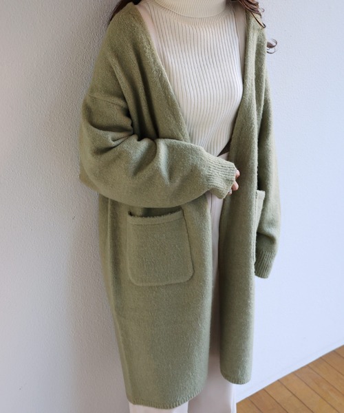 ふっくらと厚みのあるボリューム感が暖か&かわいい!モコモコの糸を使用したブークレ・ニットカーディガンが入荷しました♪ヒザ位置まであるロング丈で、ヒップまわりを体型カバーしながら、暖かく♪ボタン無しのトッパータイプでざっくりルーズに羽織れるシルエットがトレンド感たっぷりです。アウター感覚で着られるコーディガンとして。ワンマイルウエアやショッピングモールなどへのお出かけ、車移動などでも大活躍の1枚です!裏地なし※撮影時のライティング、ご覧になっているモニター・PC環境により実際の商品と色味が異なって見える場合がございます。ご了承の上お買い求め下さい。≪備考≫伸縮性:あり透け感:なし生地の厚さ:厚手肌ざわり:柔らかいその他:ブークレニット生産地:中国手洗い:可 ドライクリーニング: 可