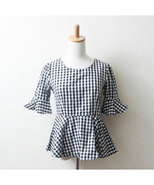 (肩幅34cm 、バスト84cm、着丈63cm、袖丈40cm) ☆今シーズンのトレンド、チェック柄を使った大人可愛いギンガムチェックのトップス。 デニムやダンガリー好きにもオススメのカジュアルアイテム。コーディネートは色々(001_B)