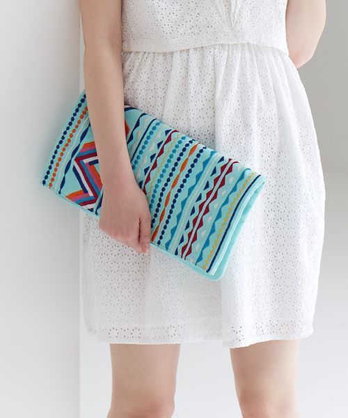 2WAY刺繍クラッチバッグ☆ カラフルな幾何学模様の刺繍がポイントのクラッチバッグ。 ショルダーベルト付きで2WAYでお使いいただけ、コーディネートのアクセントに最適なバッグです。 ※着用、お取り扱いの際は商品についておりますアテンションタグ、洗濯ネームを必ずご確認ください。 品名:AE 2WayEMB CLT 品番:56321991820