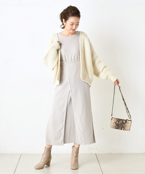 一枚で様々な着方ができるワンピース。サイドの布を前後で交差させて着ていただけます。 後ろで交差していただくと生地が配色になるので印象もガラッと変わります。 巻きスカート風のデザインがウエストをスッキリみせてくれるので、スタイルアップに。 着心地抜群の柔らかい生地感も魅力的です。