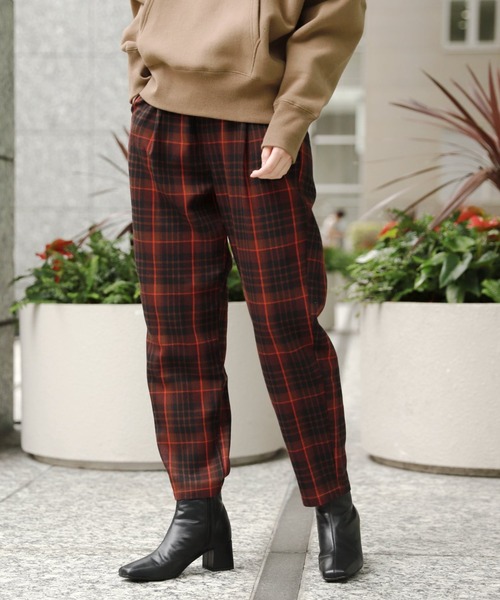 『COOK PANTS/コックパンツ』からインスピレーションを得て、より穿きやすいようにデザインしたオリジナルパンツ。 リラックスした穿き心地ながらも、ゆるやかなテーパードシルエットで、カジュアルすぎない印象に仕上げました。 フロントはすっきりとした見え感のまま、バックウエストをゴム仕様にしているので、お腹周りもラクチン◎ LAKOLEオリジナルのチェック柄や、定番カラーなど豊富なカラーバリエーションをご用意しました。 ≪COOK PANTS/コックパンツ≫ もともと現職のシェフたちが厨房で愛用していた仕事着に由来。 動きをじゃましない太さと、せわしなく動き回ってもずりおちてこないウエストゴムやドローコードを装備しているのが特徴。 【素材】 ポリエステル×レーヨンの起毛素材を使用。 柔らかく軽い生地で、ふわっとした起毛感が秋冬にぴったりの質感です。 【スタイリング】 ボリュームのあるニットや長めのトップスとレイヤードしても◎ コーディネートを選ばずにお使いいただける優秀ボトムスです。