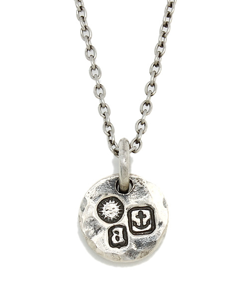 ◆amp japan◆(アンプジャパン) 『ホールマークが打ち込まれた存在感のある逸品』 “時代が変遷しても、風化することのないもの。 身につける事により、勇気と愛を備えられるようなもの。” そんな作品を提案するブランド「amp japan(アンプジャパン)」。 こちらはラウンドカットされた味わい深いシルバーのプレートネックレス。プレートには“ホールマーク”が打ち込まれており、シンプルながら存在感のある仕上がりに。 ホールマークとは、1300年代イングランド国王の領地で製作される銀器に、スターリングシルバーの証として豹の頭の刻印を打ち込んだことが由来となったマークです。