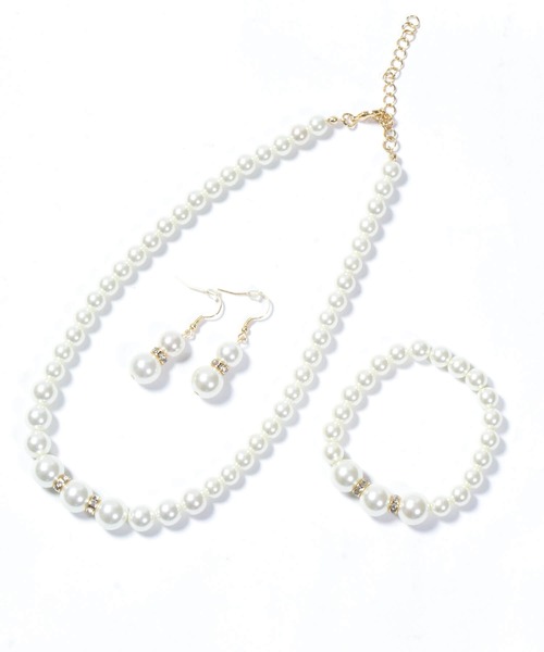 特徴■柔らかな輝きを放つパールとビジューの煌めきが上品なアクセサリー3点セット♪■ネックレス+ブレスレット+ピアスの3点セットで統一感のあるコーディネートへ♪■首周りはアジャスターでサイズ調節が可能です。■ブレスレットはシリコンゴムで伸縮可能。着脱も楽々なのが嬉しい◎◆オススメシーン結婚式・パーティー・フォーマル・謝恩会・二次会・お呼ばれ・成人式・入学式・卒業式・入園式・卒園式・同窓会・披露宴・演奏会・食事会・忘年会・新年会・発表会・セレモニー・参観日・お宮参り・七五三・冠婚葬祭・懇親会・女子会・デート・記念日・オケージョン等のシーンでご利用いただけます♪◆注目キーワードアクセサリー ネックレス ブレスレット ピアス 3点セット パール ふぇいくぱーる ビジュー ストーン アクセ ウェディング ドレスアップ キラキラ キャバ嬢 ゴールド シルバー 金 銀